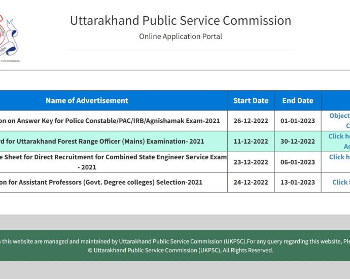 Uttarakhand Public Service Commission (UKPSC) has released the provisional answer key for the post of Police Constable/PAC/ IRB/Agnishamak Exam 2021. candidates can check the answer key from the official website at psc.uk.gov.in. Candidates can raise objections till January 1, 2023. The UKPSC conducted the examination for the post of PoliceContinue Reading